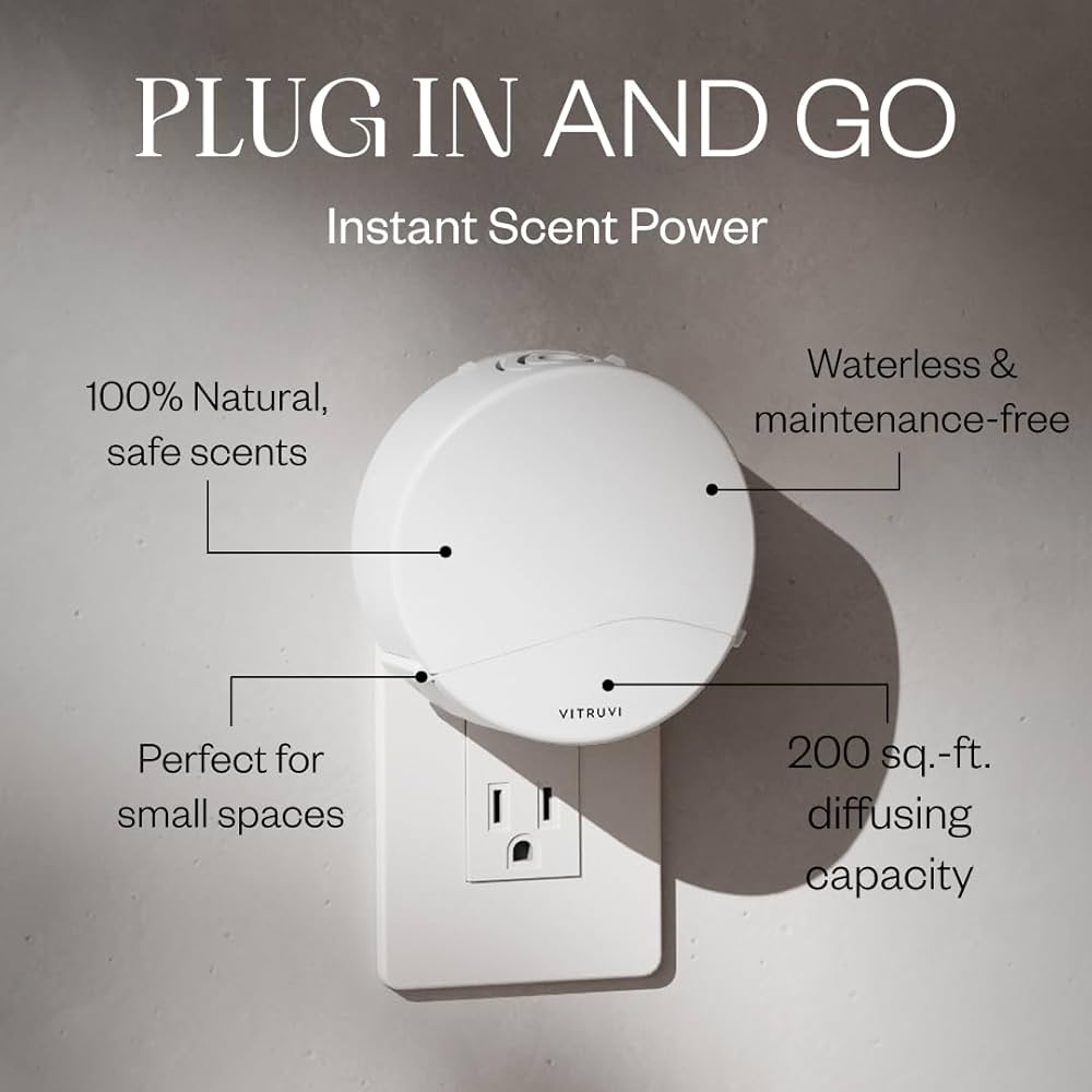 The Push Plug-In Wall Diffuser delivers 100% natural scent for up to 500 hours—mess-free, and effortless. With adjustable scent strength and easy-swap cartridges, it’s the simplest way to refresh your space. Scenting up to 200 sq. ft., it seamlessly fits into any space—effortlessly bringing natural fragrance from room to room.